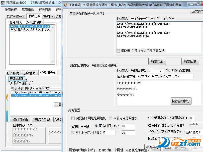 3、可自由设定多个回贴内容,随机选择回贴内容,不定时回贴。