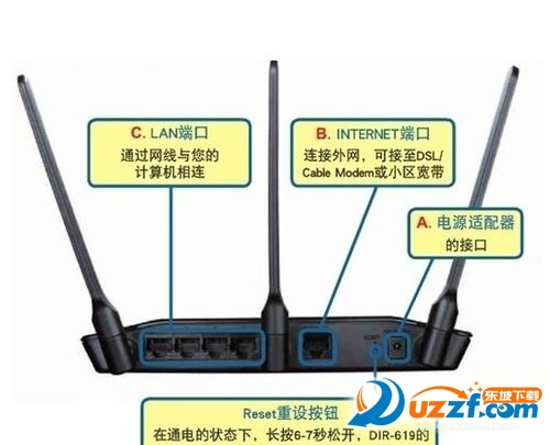 2、认识清楚后,接下来我们来连接路由器。这里分为有和无adsl modem猫上网两种情况。第一种情况:如果有上网猫,那么需要用一个网线将猫的ethernet接口和无线路由器wan接口连接在一起,然后在用另一个网线,将无线路由器lan接口和电脑主机连接即可。第二种情况:如果直接网线连接上网。那么直接将网线连接到无线路由器的WAN接口,其余操作相同即可。