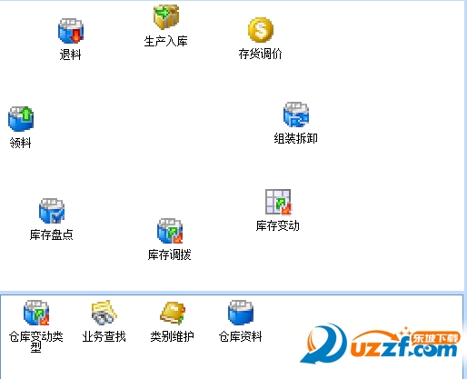 领料、退料、生产入库、产品入库、物料领用、库存盘点、仓库调拨、借入、借出、借入还出、借出还入,供方客户资料管理,供方供货汇总、明细报表。