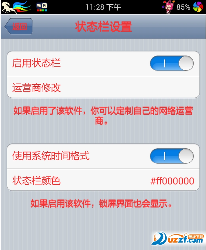 你可以查看Android提供了和状态栏相关的权限,也就折叠下拉、隐藏图标那么三项,没有修改颜色的权限。所以,除非你Root,再借助反射,有可能实现这一功能。这一功能,Android也许会在新的版本中支持,但目前不行。Android4.4已经引入了一个新的特性,在应用程序内可以开启透明状态栏和透明虚拟按钮。