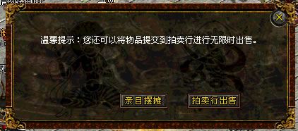 1.点击摆摊按钮,弹出摆摊对话框,您可以选择拍卖行出售(第一次逛拍卖行有详细的描述),也可以选择亲自摆摊。