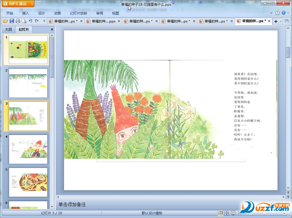我们东坡小编为大家带来了这篇花园里有什么绘本ppt下载,该绘本是取自幸福的种子绘本系列,内容完整精美,使唤绘本阅读的小朋友们千万不要错过了,喜欢该绘本的可以来我们东坡下载免费的下载使用!