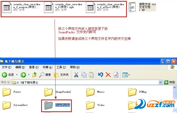 1、将三个声效文件放入游戏目录下的“SoundPacks”文件内即可