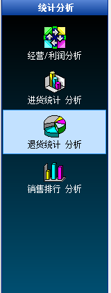 3、统计分析:经营分析、进货分析、退货分析、销售分析