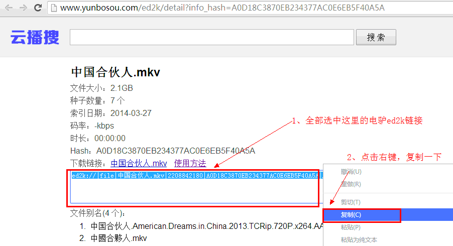 第五步:在云播搜www.Yunbosou.org找到你喜爱的影片 复制连接。