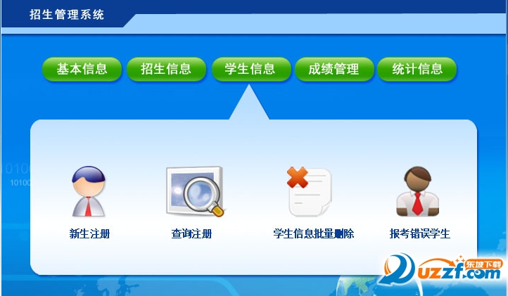 3.学生信息:新生注册、查询注册、学生信息批量删除、报考错误学生。