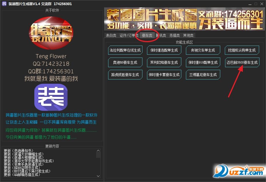 下载解压后,打开软件,选择“豪车类”,点击“迈巴赫S600豪车生成”