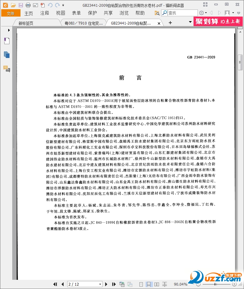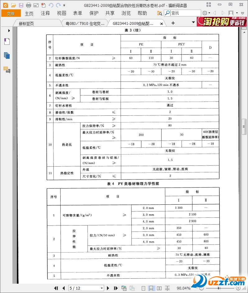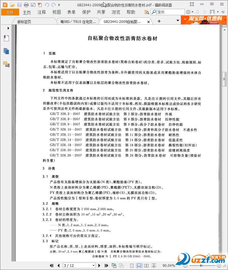 GB23441-2009自粘聚合物改性沥青防水卷材预览