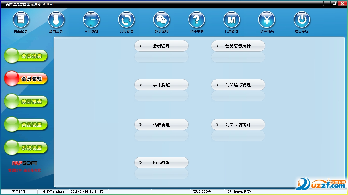 萍健身房管理系统是一款专业的健身俱乐部管理软件,系统界面简洁优美,操作直观简单,无需专门培训 即可上手操作,美萍健身会所管理软件根据健身俱乐部日常工作流程而特别设计。