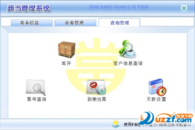 3.查询管理(库存、客户信息查询、票号查询、到期当票、天数设置)。