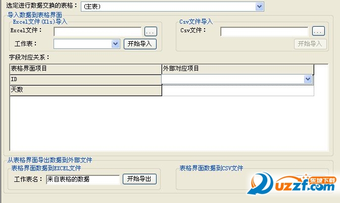 无论是导出数据到EXCEL还是从EXCEL表格中导入数据,都需要指定表格,表格一般是主表,如果是某个从表,请从该处指定。