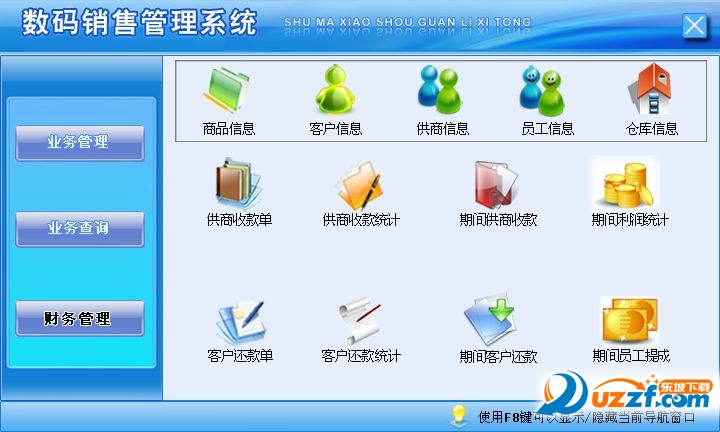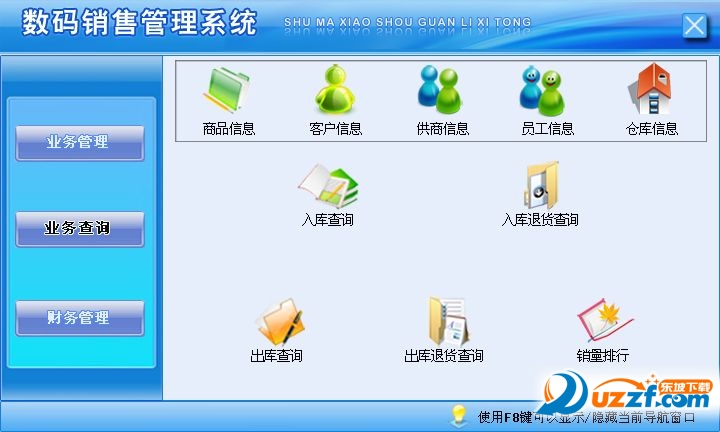 数码销售管理系统广泛适用于贸易型公司企业,及商场、门店等,软件界面设计简洁大方,有利于提高工作效率,是每个货运公司合理和优化管理的好帮手!
