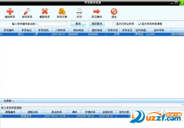 3、可以打印学员的学籍、学生证、交费单等。