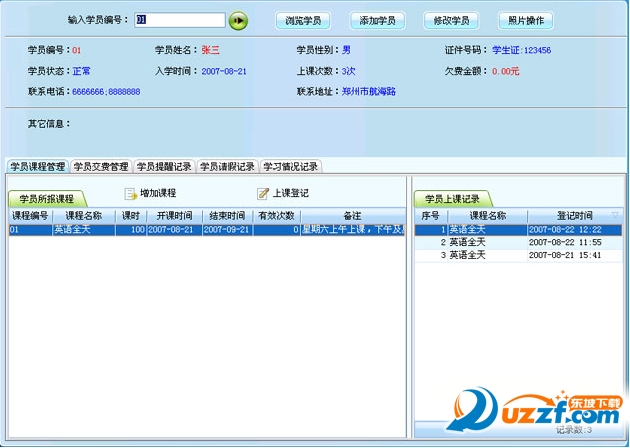 2、学员交费的管理。