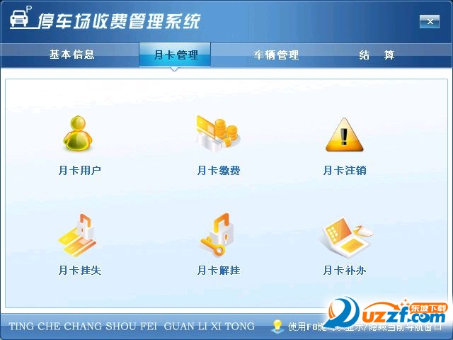 2.月卡管理,主要包括月卡用户、月卡缴费、月卡注销、月卡挂失、月卡解挂和月卡补办;