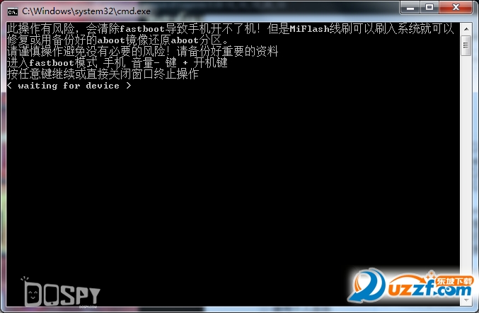 清完后关机,按音量减+电源键进入fastboot模式,插上数据线连接电脑。