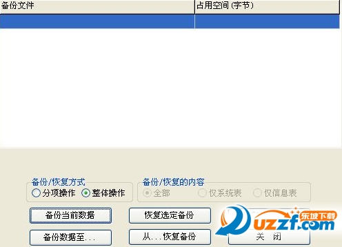 恢复选定备份按钮:将备份列表中选定的备份文件恢复到当前系统中,如果当前系统中有备份后新增加的数据,将会丢失。