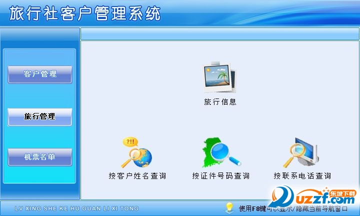 二、旅行管理包括(旅行信息、按客户姓名查询、按证件号码查询、按联系电话查询);