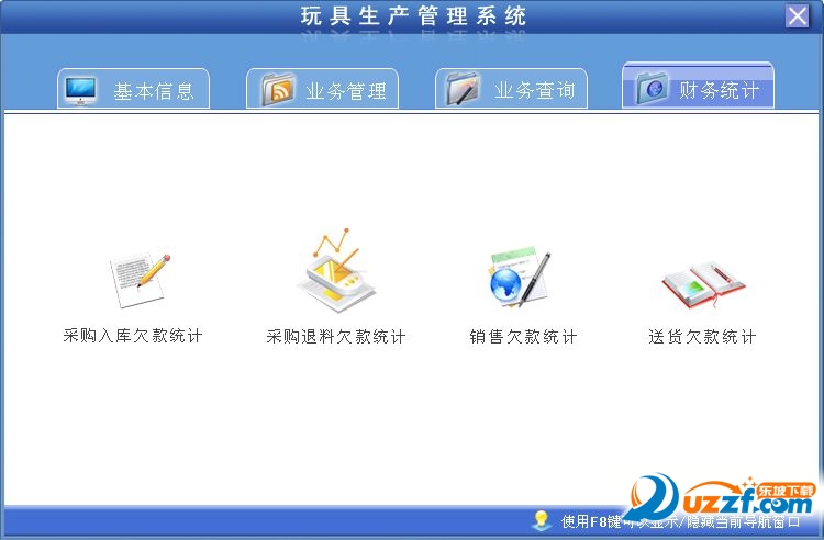4.财务管理,包括采购入库欠款统计、采购退料欠款统计、销售欠款统计、送货欠款统计等。