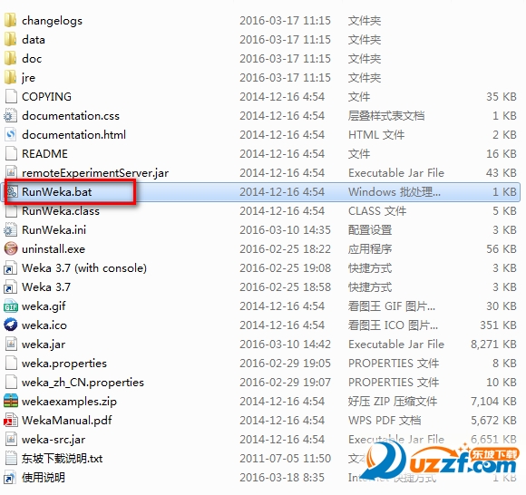 当然也有快捷方式可以用,但图标因为路径问题需要你自己重新设定一下。理论上将根目录下的weka.jar提取出来覆盖你之前安装好的weka目录中的weka.jar,即可实现weka汉化,32位和64位都可以用,但前提是你安装的weka版本要是3.7.12。最好事先备份好你的weka.jar文件,出现问题可以恢复。