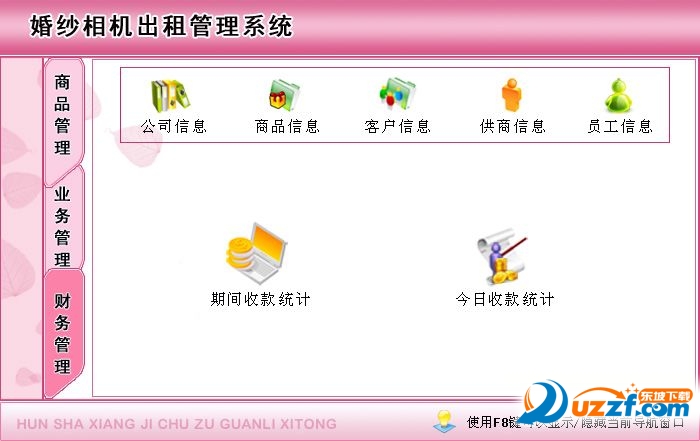 一款绝对物超所值的影楼婚纱相机出租收费系统,是针对影楼管理开发,功能强大,操作简便,界面友好,该管理软件将是您明智的选择。