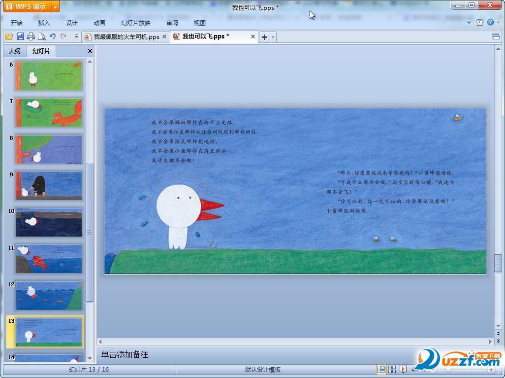 我也可以飞绘本是讲述了鸟宝宝学飞的故事,故事简单易懂却附有哲理性,讲述一系列事件的来表达坚持和力量的帮助,对孩子们的成长具有很大的帮助,有需要这篇绘本的家长老师们可以来我们东坡免费的下载!