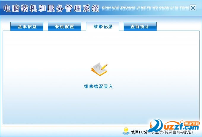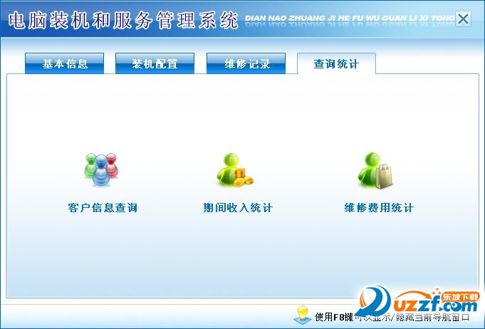 4.查询统计(客户想信息查询、期间收入统计和维修费用统计)。