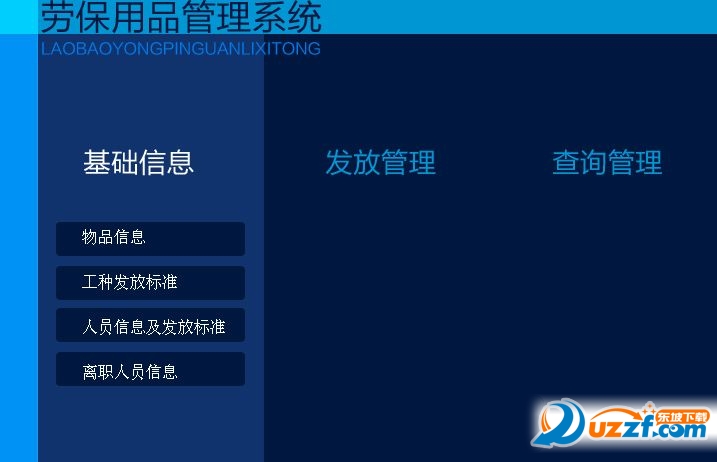 1.基础信息:物品信息,工种发放标准,人员信息及发放标准、离职人员信息。