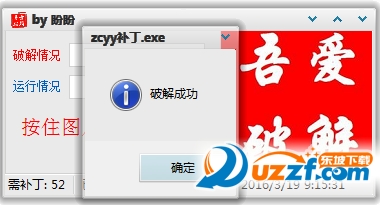 3、运行zcyy.exe(也就是安装后的原版程序),再运行 zcyy补丁.exe ,按照下图进行破解