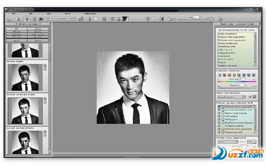 Silver Projects Premium出自Franzis,它是一款可以将彩色照片处理成黑白效果的软件。用艺术的话来说,黑白照片能看到彩色照片看不到的色彩!很多明星都喜欢拍黑白时尚照片,用此软件正合适。欢迎下载!