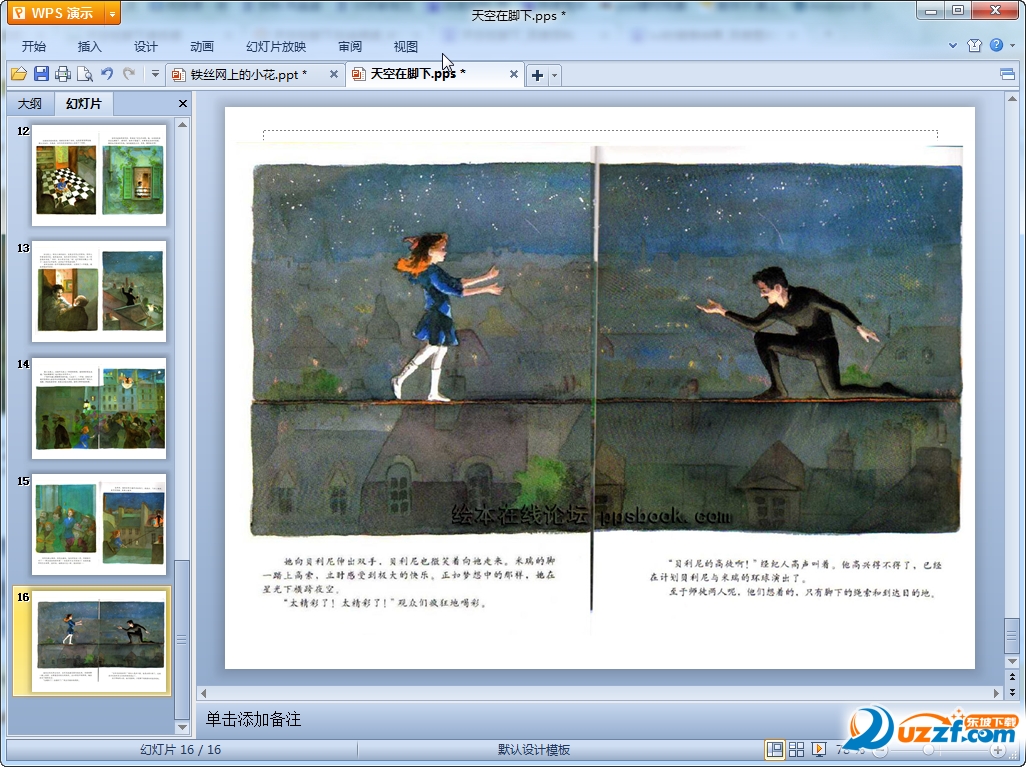 这是来自美国凯迪克大奖绘本中的天空在脚下ppt,内容制作比较精美,绘本故事讲述的是梦想成功励志的内容,对孩子们的成长很有帮助,喜欢这类型绘本的家长们可以来我们东坡免费的下载阅读!