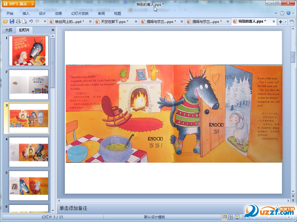 喜欢阅读狼和小羊的故事的朋友们可以来看看我们的这篇特别的客人绘本故事ppt,内容比较精美,高清的画面以及文字,新颖的内容(羊和狼成为朋友)深受广大绘本爱好者的喜欢,有需要的可以来我们东坡免费的下载!
