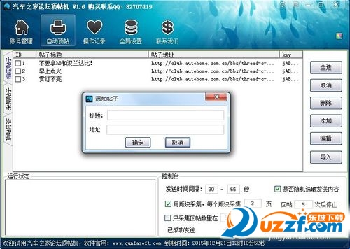 3、接下来我们添加要回帖的地址,地址一定要填正确,标题可以随便填写!