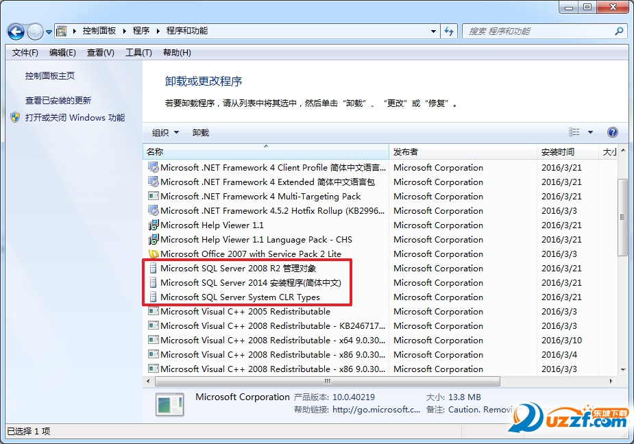 打开控制面板,卸载掉所有跟SQL有关的内容
