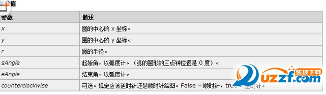 arc(x,y,r,sAngle,eAngle,counterclockwise) : 绘制一条指定半径的弧到点(x,y)。