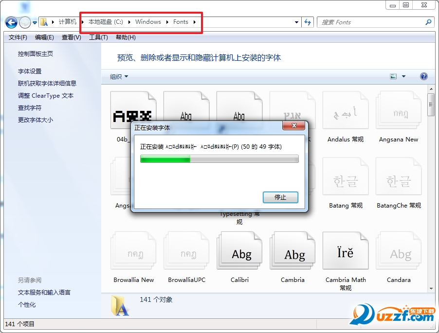 首先需要下载photoshop字体文件,然后将下载好的字体复制到 C:\Windows\Fonts 目录下,如图: