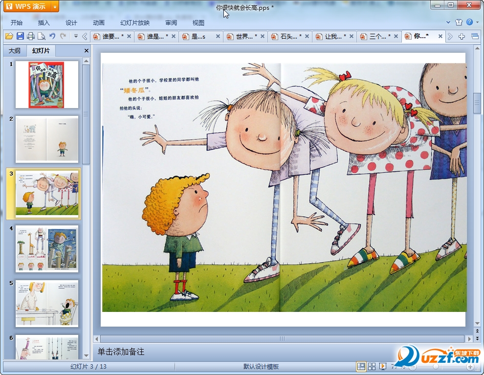 这是一篇绘本故事你很快就会长高ppt,对孩子们以及家长都有一定的帮助,非常适合亲子阅读,这里我们东坡小编为大家提供了免费的下载,欢迎有兴趣的家长们前来下载阅读!