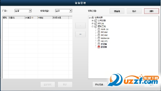 3.进入大浦综合客户端 主界面,然后点击下边菜单的“设备管理”—》“创建组”。