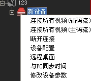 ,右击“新设备”图标,系统可以选择不同的码流方式打开图像,如果觉得主流流打开速度比较慢,可以选择:辅码流方式方式来打开