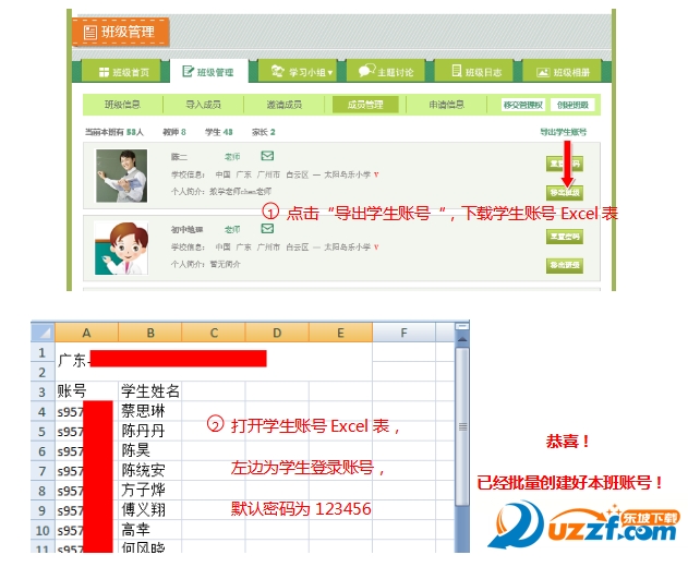 5、导出学生账号。