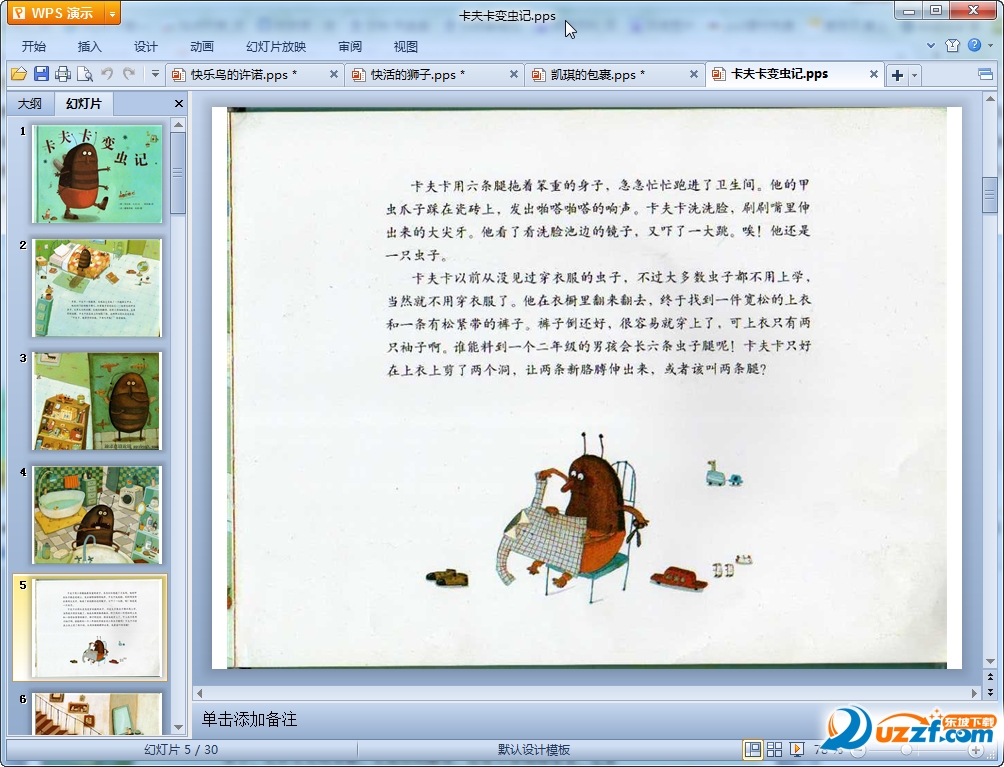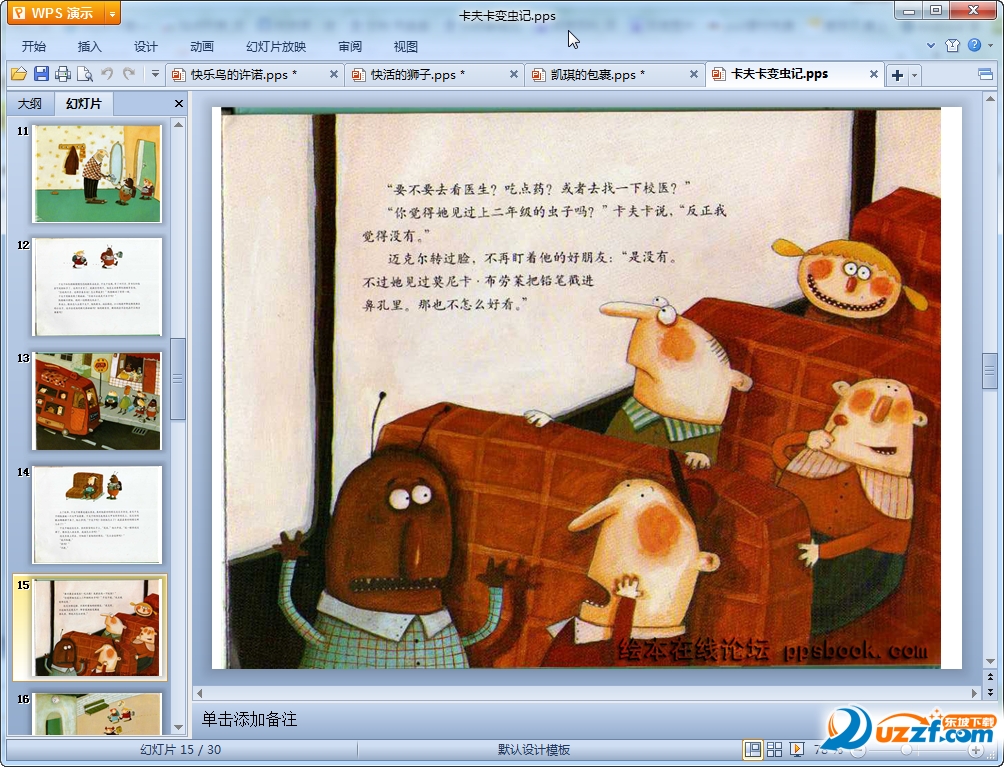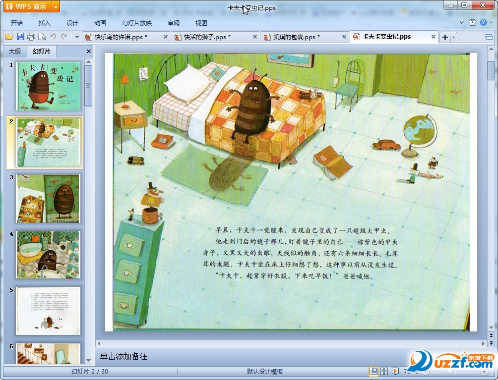 这是一篇故事非常有趣的绘本故事,讲述了主人公一觉醒来变成甲虫的故事,非常有趣深受孩子们的喜欢,让孩子们懂得不受关注被忽视的痛苦,非常不错的一篇绘本故事,有兴趣的快来我们东坡免费的下载这篇卡夫卡变虫记ppt绘本吧!