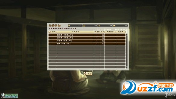 在游戏开始的评定时接到第一个大目标的任务:进行扩张的准备。分别要求玩家准备金钱1500、兵粮1500、木材800、铁500等。