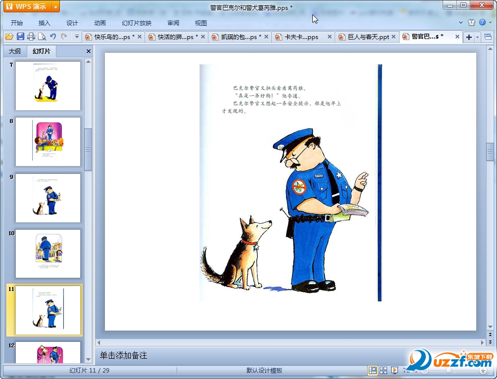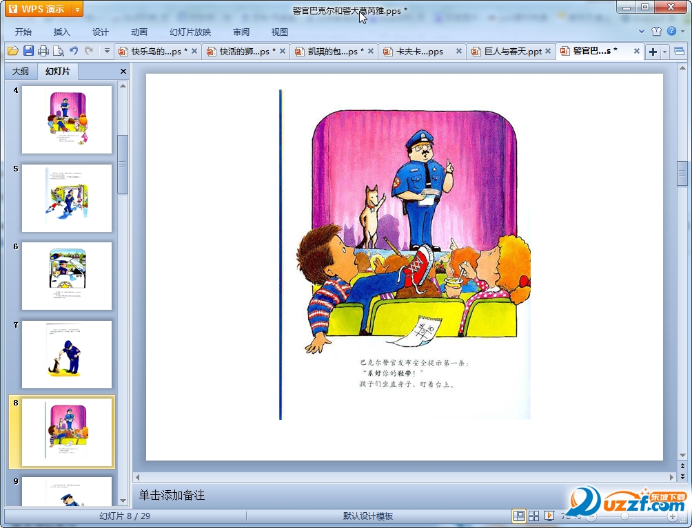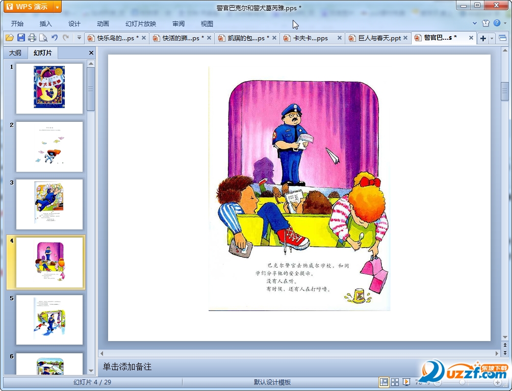 这是一篇有趣的绘本故事,通过警官巴克尔和警犬葛芮雅做交通规则演讲的故事来教育孩子们要懂得遵守交通规则的重要性,对孩子们很有帮助的一篇绘本,有兴趣的家长们可以来我们东坡免费的下载这篇警官巴克尔和警犬葛芮雅ppt!
