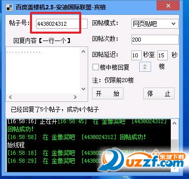 登陆成功后,设置帖子号以及需要进行顶贴的内容,点击“开始”按钮即可