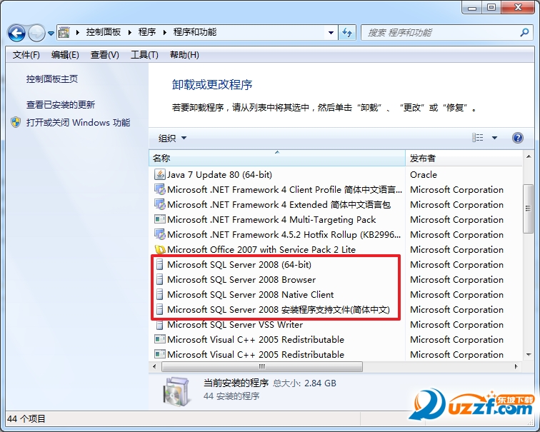 打开控制面板,卸载程序,找到sql server 2008精简版相关的全部内容,卸载掉!