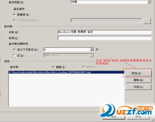 4 在弹出对话框中,点击图示按钮,选择存放数据库备份文件的地址