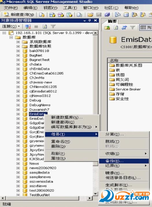 2 选中要备份的数据,点击右键,选择任务—>备份