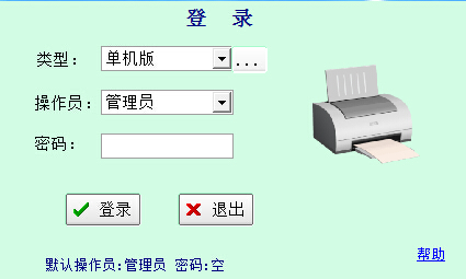 打开软件,进入登录页面。默认是单机版数据库,管理员,密码为空。点击登录即可。如图所示: