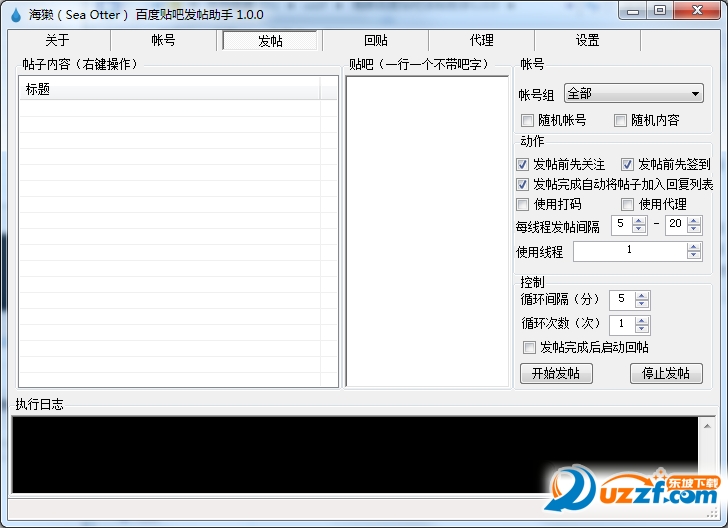 海獭(Sea Otter)百度贴吧发帖助手是一款针对百度贴吧的辅助工具,可以进行批量帐号操作,支持批量登录,发帖,回帖等操作,需要的朋友可以免费下载使用。