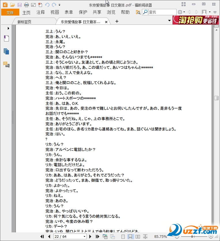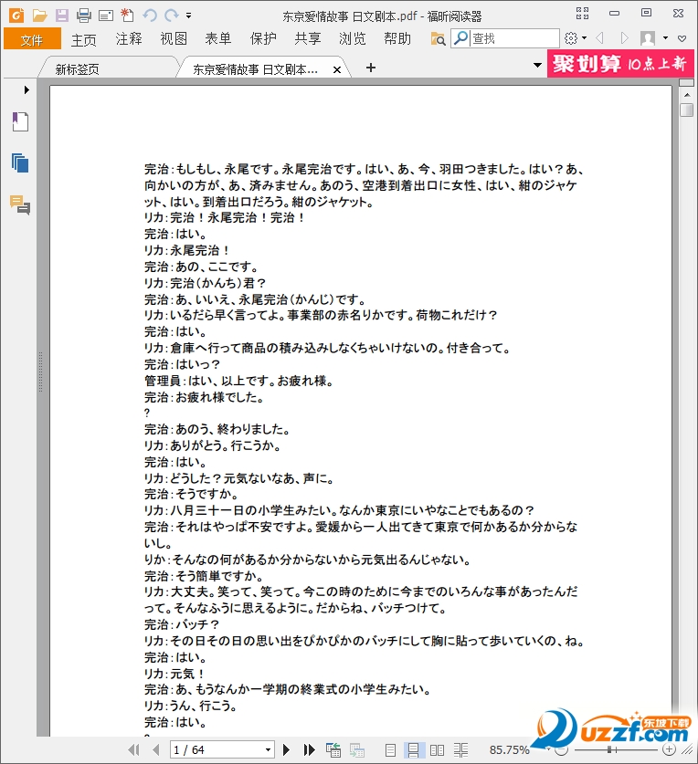 东京爱情故事是根据同名漫画改编的一部爱情电视剧,这里我们东坡下载为大家带来的是完整版的东京爱情故事日语剧本,需要准备该东京爱情故事话剧之类的朋友们可以来看看这篇东京爱情故事日语台词!